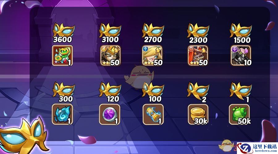 活动期间,战役挂机有几率掉落【舞会假面】,使用【舞会假面】可在舞夜梦回中换取如图奖励。