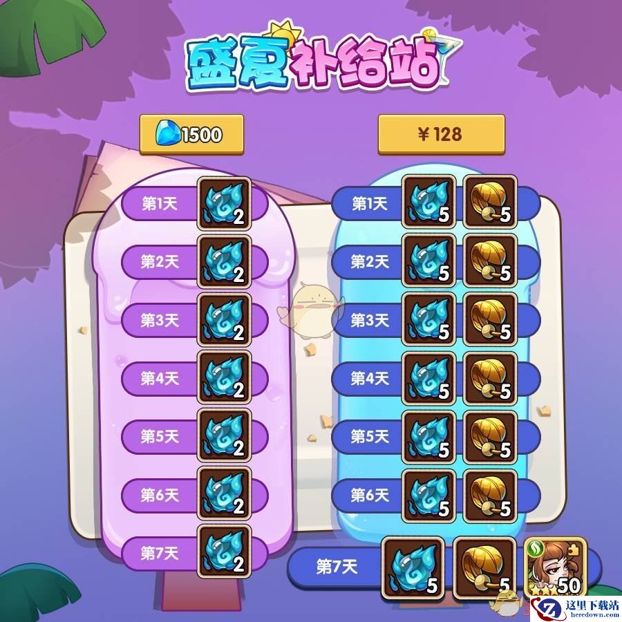 购买钻石补给可获得先知宝珠,购买清凉补给可获得先知宝珠和辉煌圣物,第7天还能获得一个五星格洛丽亚。具体奖励如下: