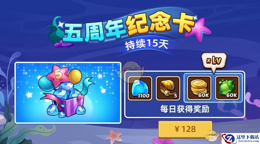 活动期间,海之祝福提供五周年纪念卡和礼包可以购买,详情如图。