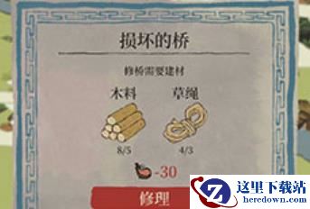 借助该物品,玩家再收集指定数量的木料,可以对破损的桥进行修补,提供更多的进阶收益。