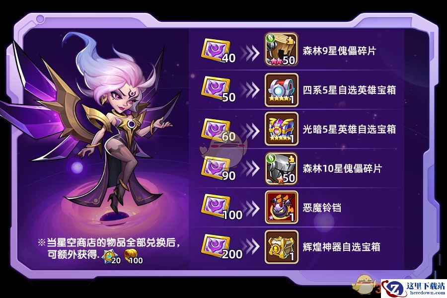 若星空商店的物品全部被兑换,还将额外获得:时空核心x20,辉煌圣物x100!