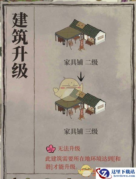 1、每个建筑的升级都是有一定要求的,家具店的升级还需要达成环境的条件,环境条件不达标的话,是升不了级的。