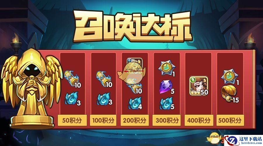 同时,在活动期间使用英雄召唤卷轴可获得积分,当积分达到指定数额,可通过邮件领取对应奖励。
