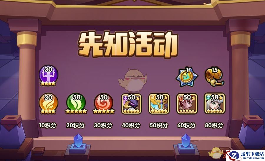 当积分达到60,可获得深渊刺客——娜克娅和1个时空核心;当积分达到80,可获得幽暗游侠——伊洛和15个辉煌圣物。