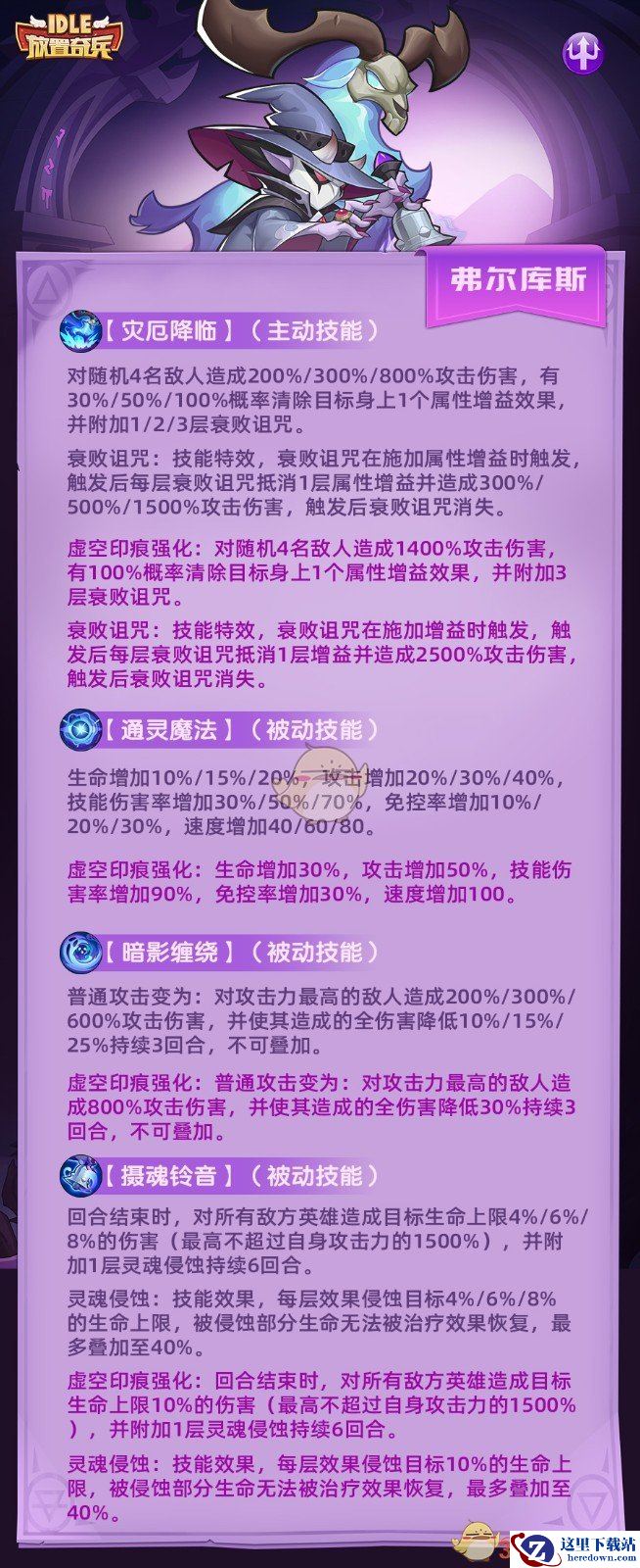 以上就是小编整理带来的《放置奇兵》弗尔库斯技能图鉴介绍,大家还喜欢吗?更多精彩内容,请点击关注手游网,小编将持续为您更新!