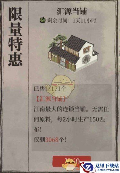 从建筑的介绍来看,汇源当铺是江南最大的连锁当铺,不需要任何原料,每2小时都能产出150匹布料。