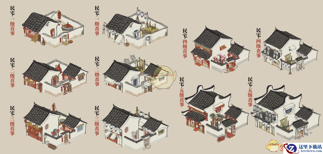 “红白喜事”发生之后,居民居住的民宅也会有所变化,不同等级的民宅外观会有不同。