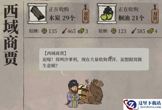 西域商人的到来会为我们带来经验和铜钱,还可以在他那里购买或者兑换一些自己需要的东西。