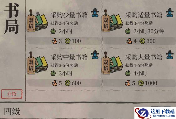 书局每天的前2次采购都是双倍奖励。双倍指的是数量翻倍。