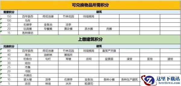 更多建筑兑换表: