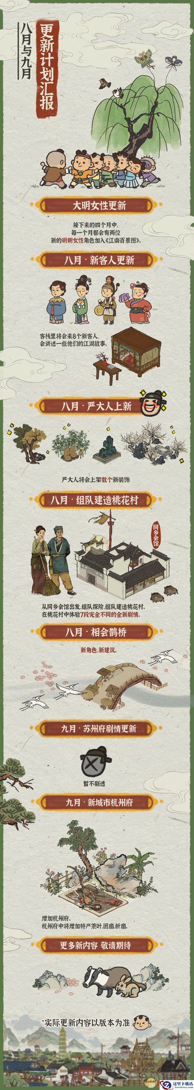 长图内容便是8-9月预计的大版本更新计划,具体详情还请知府大人们以丽娘届时的版本更新公告为准。