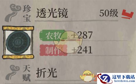 3.透光镜最适合搭配的角色是李时珍,李时珍有着非常高的农牧属性,透光镜10%的加成在李时珍身上能够变成大幅度的属性加成。并且李时珍有着天赋技能“百草”,只要是负责农牧工作,就能够额外获得100%的产品,搭配透光镜的天赋技能,一次能够额外获得200%的草药产量。