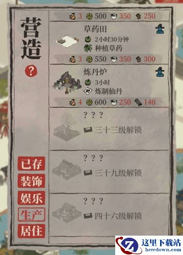 1、生产建筑【草药田】放置在城市里后可以产出草药资源,草药田等级越高,一次生产获得的草药数量越多。
