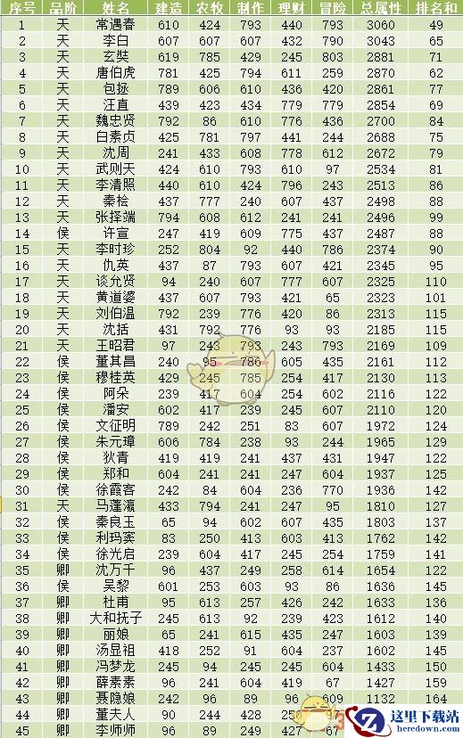 以上就是本期关于《江南百景图》全人物满级属性数据一览的全部内容了,要想获取更多游戏资讯请点击关注手游网。