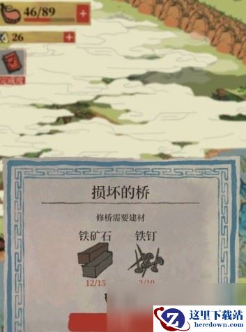 在江南百景图手游中,玩家通过外出探索,然后在地图中的石块进行采集,就会有一定几率获得铁矿石。玩家在进行探险支线坏掉的桥时,需要花费15个铁石矿和10铁钉才能修复桥。