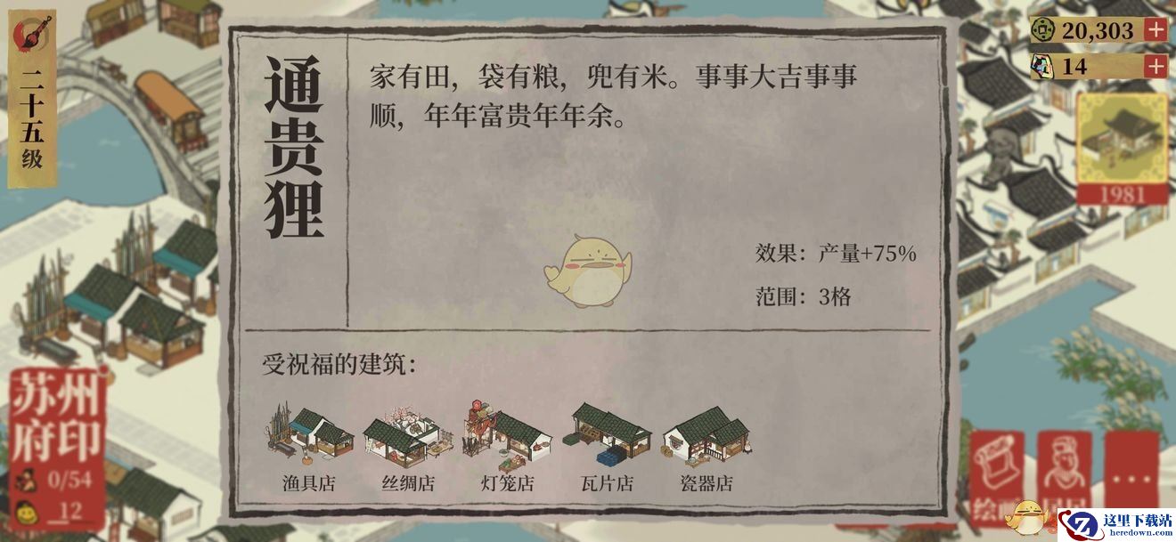 在江南百景图手游中通贵狸在哪呢?通贵狸是苏州的特有建筑,能给特定的建筑产量加成,很多小伙伴都想获得这个特别的建筑,那么想知道通贵狸位置的就跟随小编一起来看看吧。