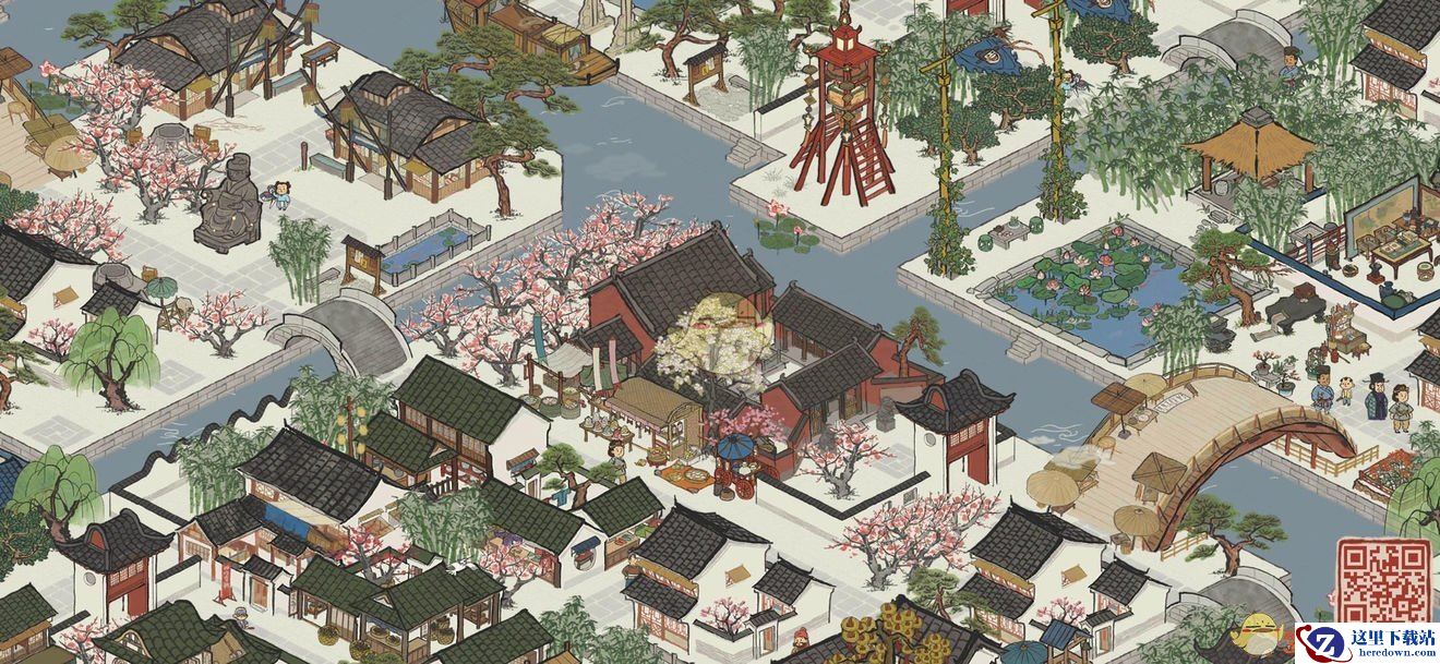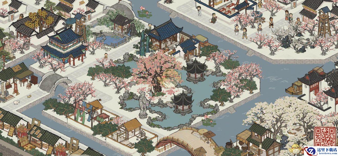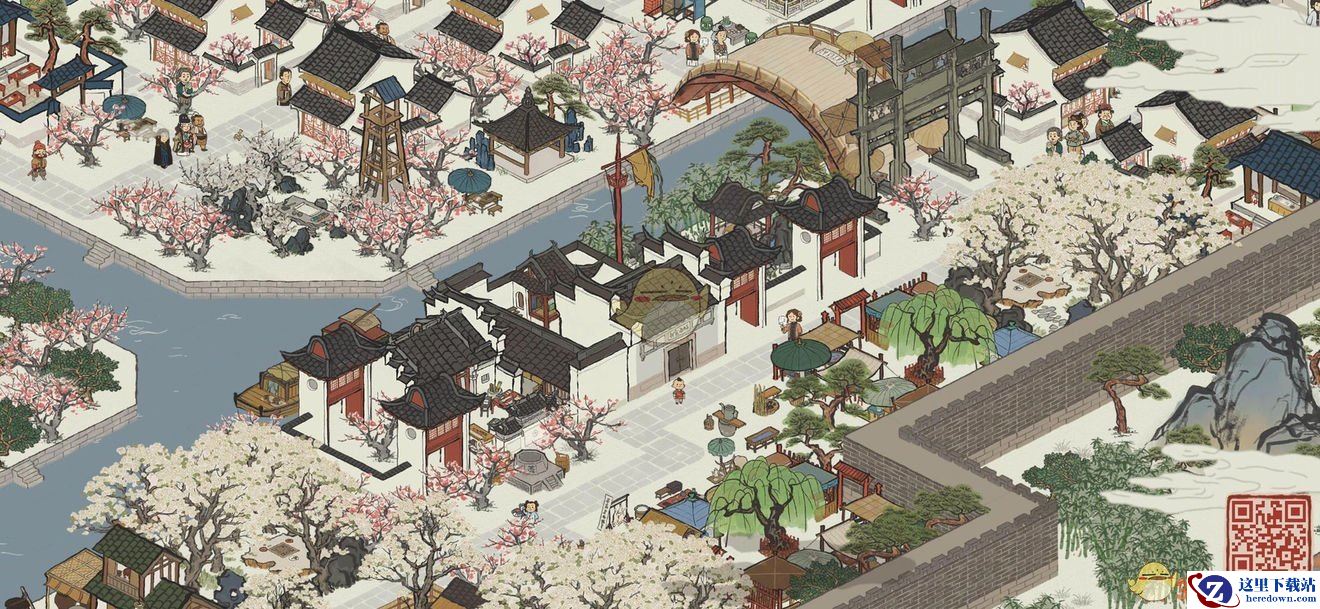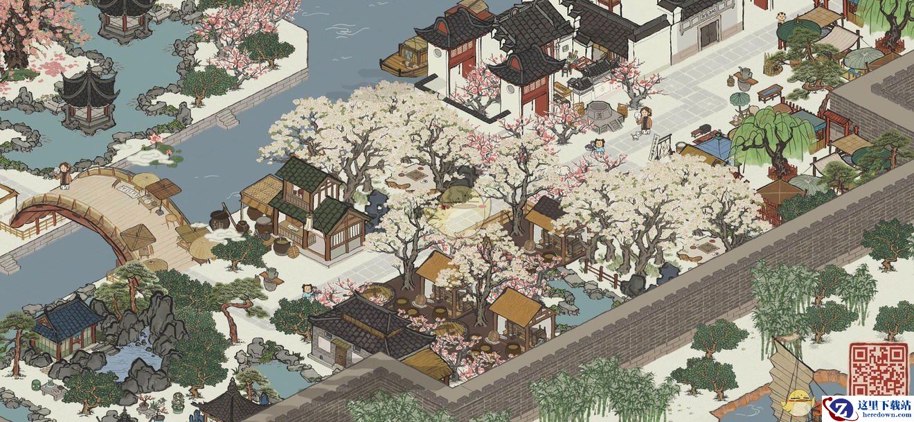 使用材料:官邸、桃花树、庙会街、围墙。