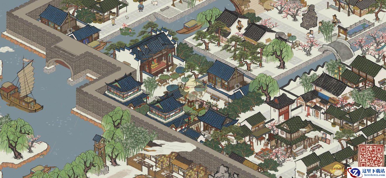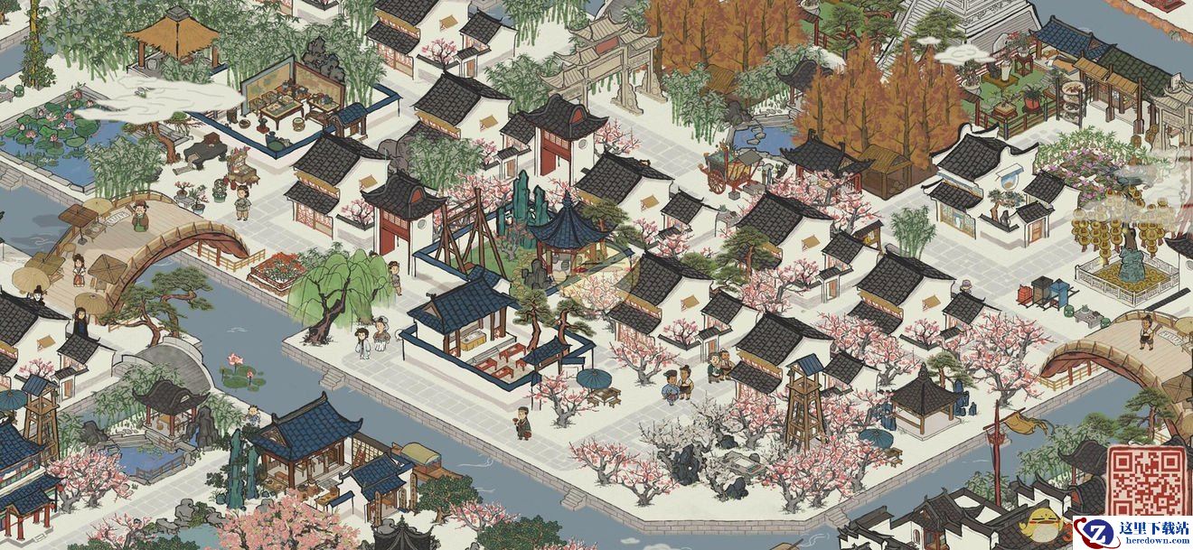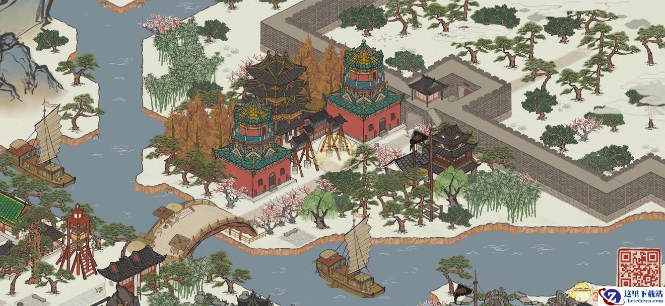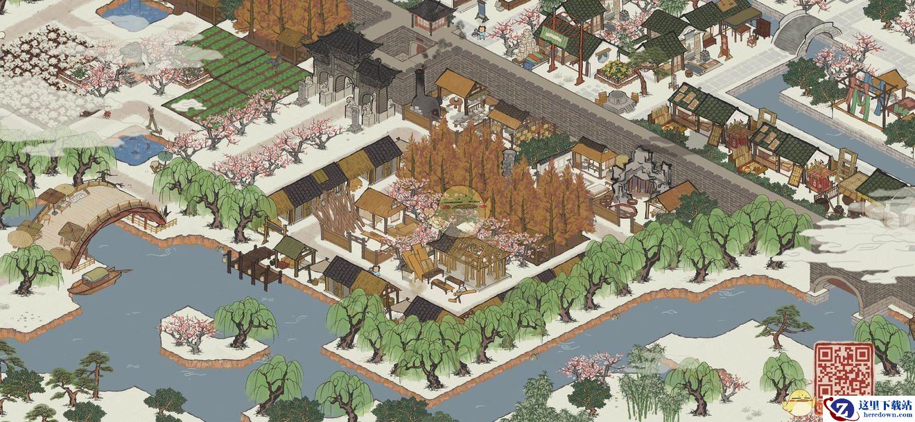使用材料:官邸、桃花树、庙会街、围墙。