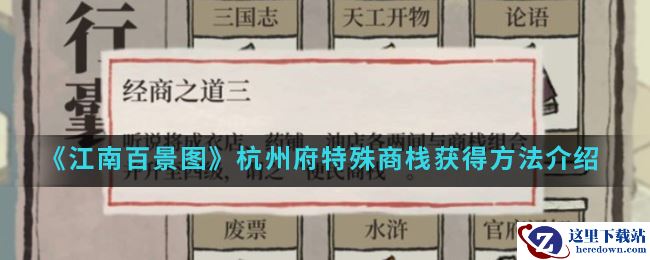 以上就是小编整理的江南百景图杭州府特殊商栈获得方法介绍,想知道更多相关资讯攻略的请关注手游网。