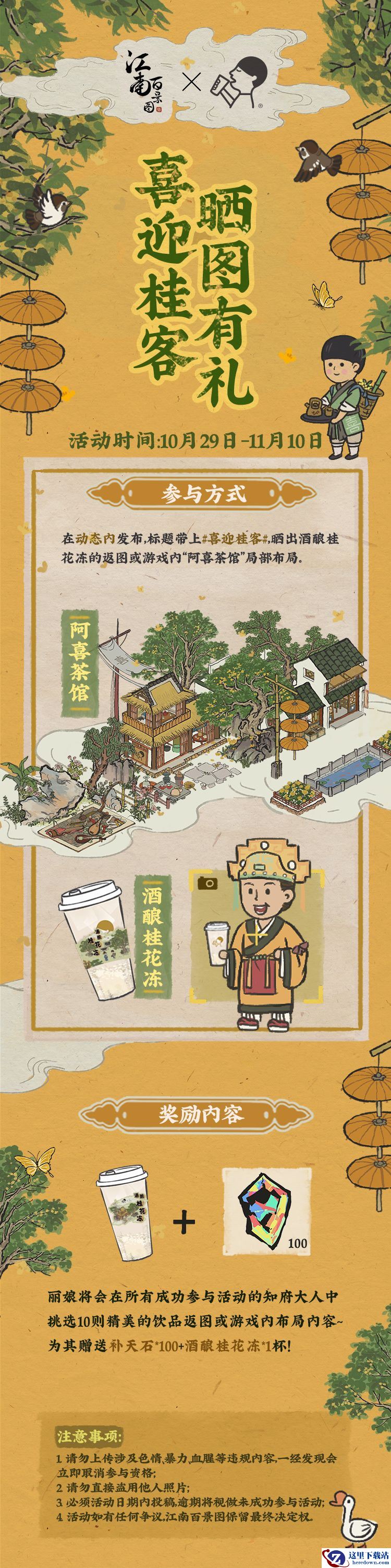 以上就是小编整理的江南百景图喜迎桂客晒图有礼活动介绍,想知道更多相关资讯攻略的请关注手游网。