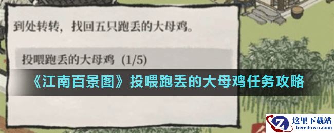 《江南百景图》游戏中投喂跑丢的大母鸡任务怎么完成?这个投喂跑丢的大母鸡任务主要是要寻找五只跑丢的大母鸡,但是很多小伙伴不知道大母鸡的位置,那么接下来小编为大家带来《江南百景图》投喂跑丢的大母鸡任务攻略,一起来看看吧。