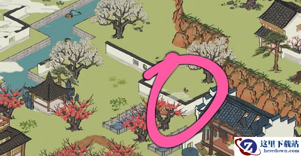 3、在杂货阿意的店左上角围墙中,需要砍掉外面两棵树才能进去。