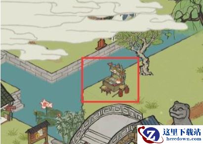 2、玩家解锁迷雾后,直接过桥,在桥的旁边有一个老头,老头旁边就是美鞋张的店铺了。