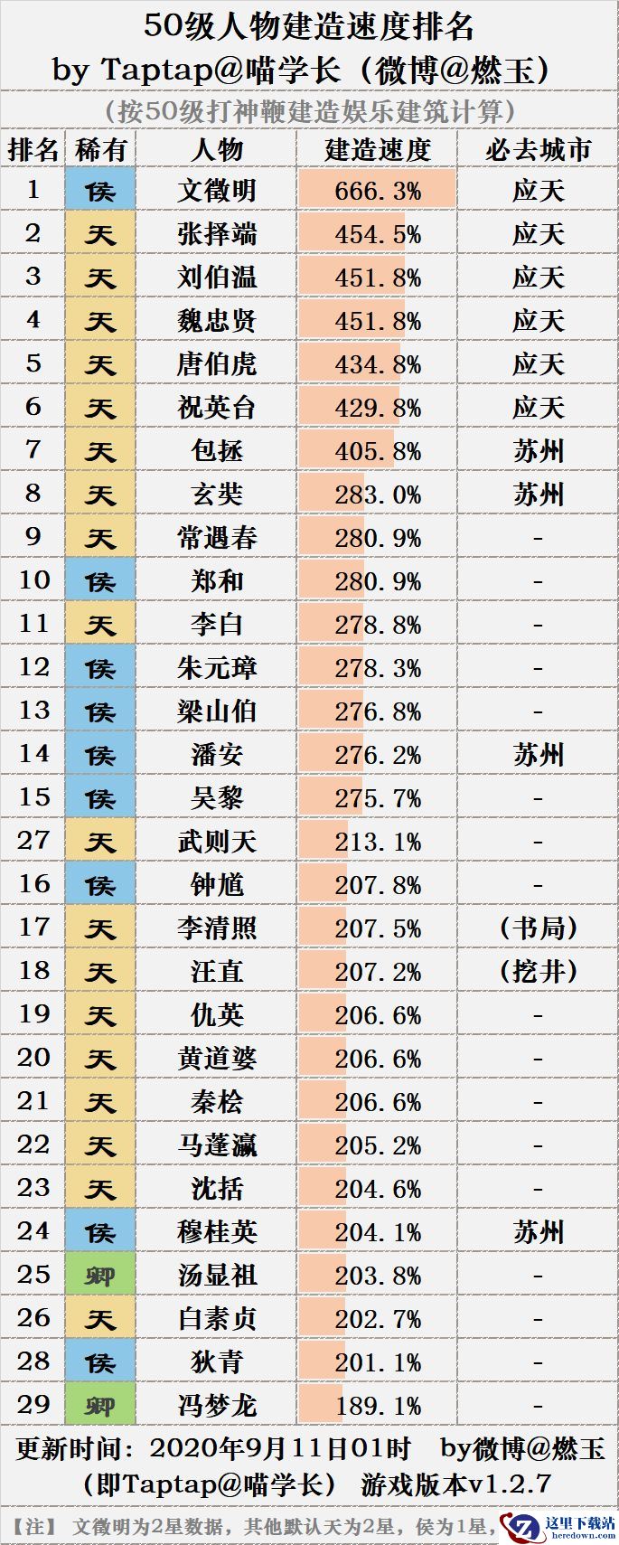 Tips:不推荐上图以外的人物刷建筑,除非为了给他们经验