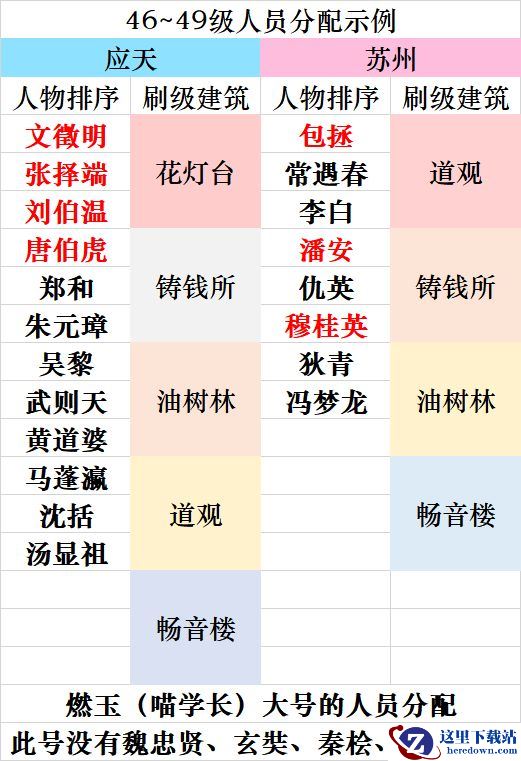 分配后的样子类似这样:(图示例为我3个号当初刷经验的人员分配)