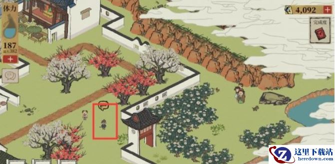 1、游戏中杂货店阿意的店,右上角梅花树下,戴面具的小孩就是西西。