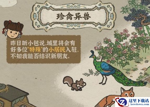 城里将入驻孔雀,松鼠,狐狸等小动物,都是会动的哦。