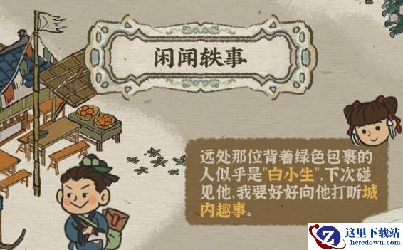 远处那位背着绿色包裹的人似乎是"白小生",下次碰见他,我要好好向他打听城内趣事。