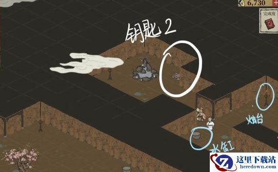 里面有4个水缸和4个烛台,完成任务之后巨石才会消失