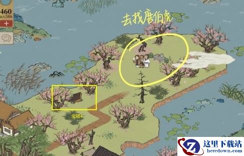 提醒:本章节有很多种桃树的地方,所以多囤一些桃花树苗和井水!!!种下的桃花成熟之后就可以收取桃花泪了。桃花坞废墟周围的桃树坑栽种完之后,桃花坞废墟会变身。变身后的建筑可以领取奖励。