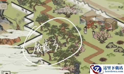 废墟8变身需要将下图的树坑栽种,到达树坑需要砍掉杂花花丛。