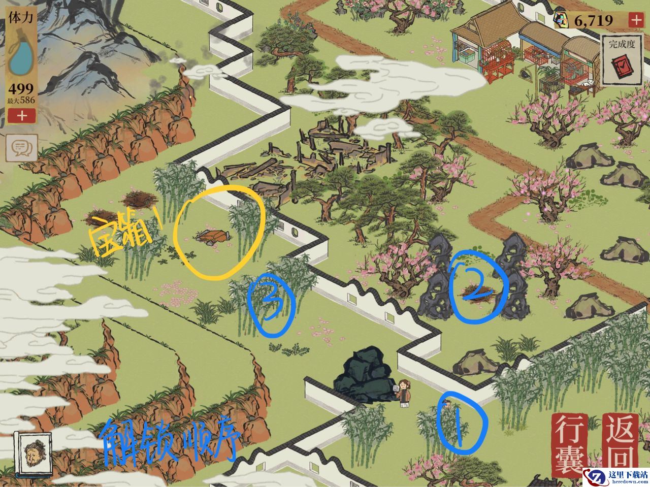 1.巨石一定要按顺序砍,不然进不了宝箱1所在的地方(位置:任务25)