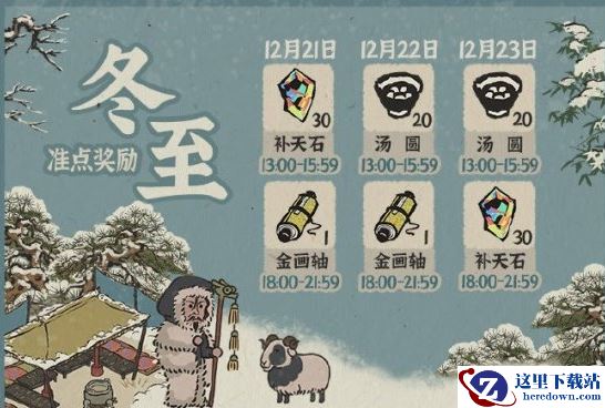 2、12月23日和12月22日的13:00~15:59期间登陆游戏,可以分别获得20个汤圆,总计是40个。
