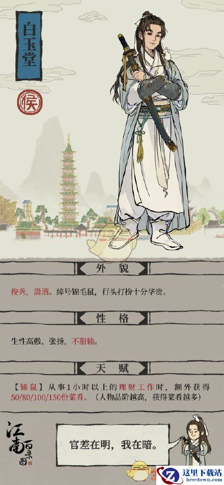 以上就是小编整理的关于《江南百景图》白玉堂人物介绍的全部内容,更多游戏攻略请持续关注手游网!