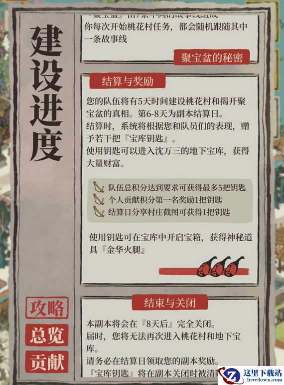今天是第一批进入桃花村探险结算日!可以去找[严大人]兑换建筑了