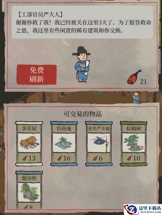 钥匙消耗完之后就可以点击旁边的[严大人]进行建筑兑换了