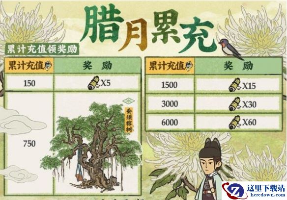 活动期间内,累计充值满750补天石,即可再领取全新建筑【垂须榕树*1】;
