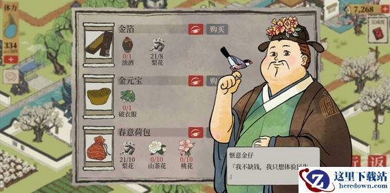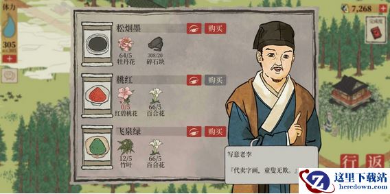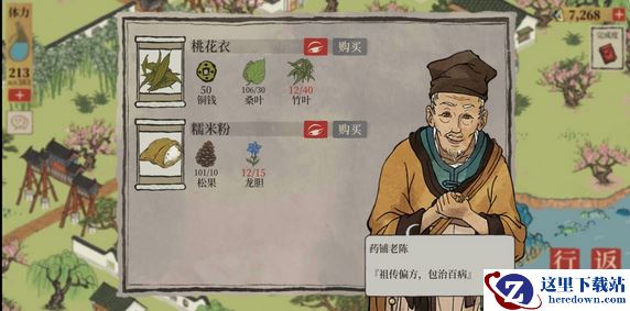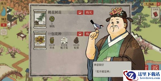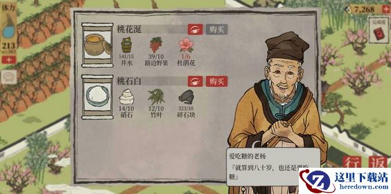 店铺售卖:桃花树苗、一包花种;桃花衣、糯米粉;桃花涎、桃石白。