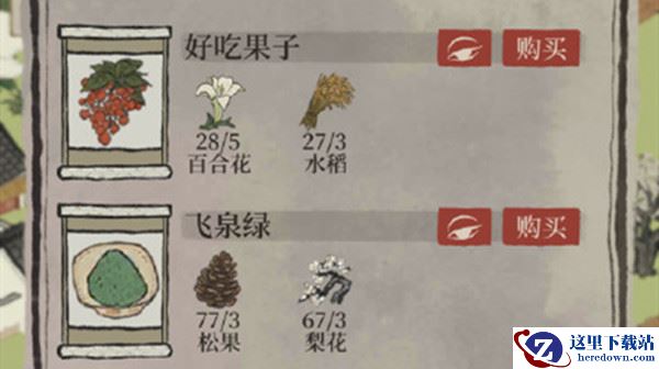 好吃果子需要玩家使用5个百合花和3个水稻来进行兑换。