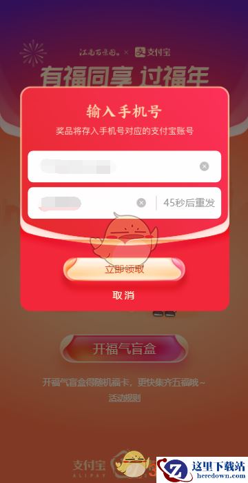 2、进入江南百景图游戏的福气盲盒活动,输入手机号码验证后,即可开启福气盲盒啦!