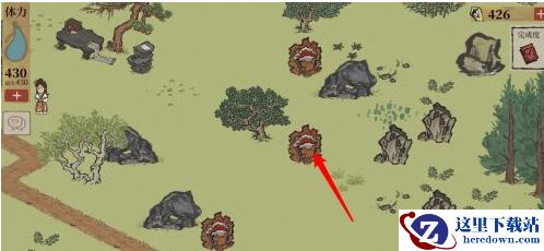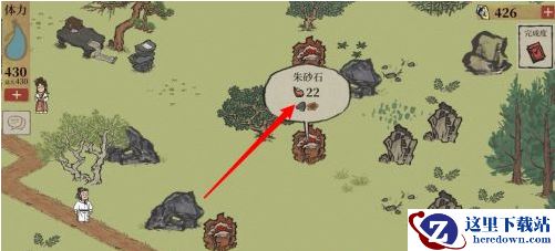 2、然后进入地图寻找朱砂石,下图红色的就是朱砂石