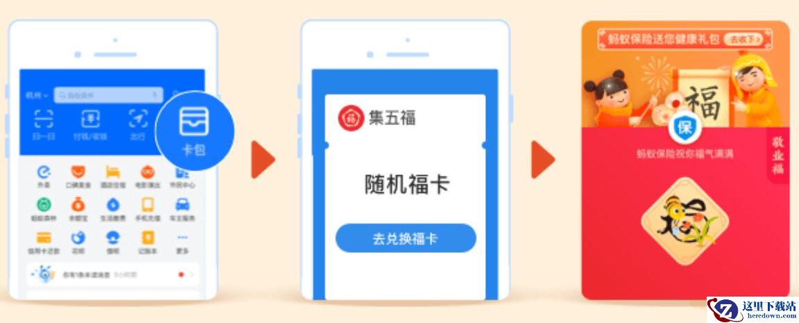 在[支付宝-卡包]找到随机福卡,即可兑换五福福卡~