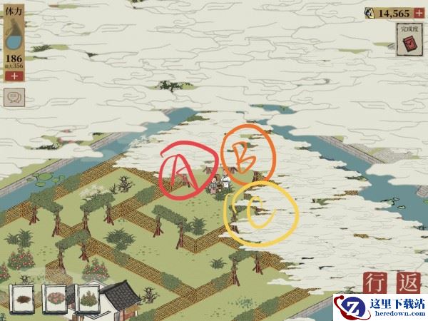 迷宫里的龙胆草要砍掉,后面会用到,反正还能有体力拿,顺便砍掉也无所谓。