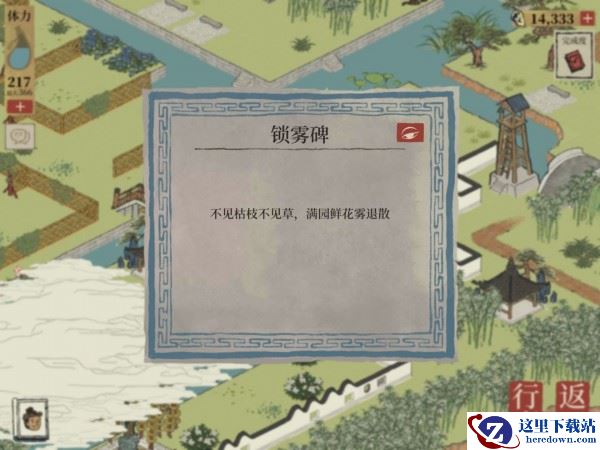 你会发现迷宫里有很多枯枝和杂草,这个是后面锁雾碑的任务,要把园中枯枝和园中杂草砍掉才能解锁迷雾,所以提前做完了后面就不用回来了。所需体力为1是因为探险的时候用的李白。