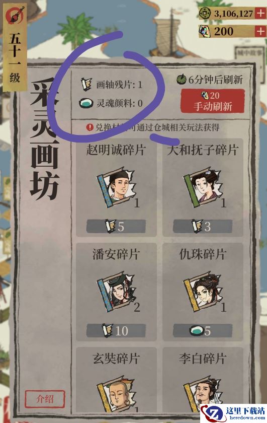 1、采灵画舫里面的画轴残片和灵魂颜料是通过救火仓城获得。