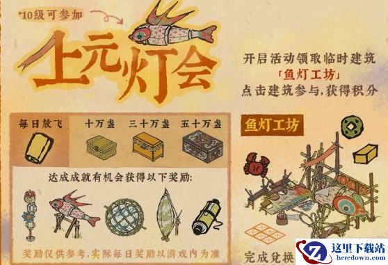 1.活动开启时,获得临时建筑【鱼灯工坊】